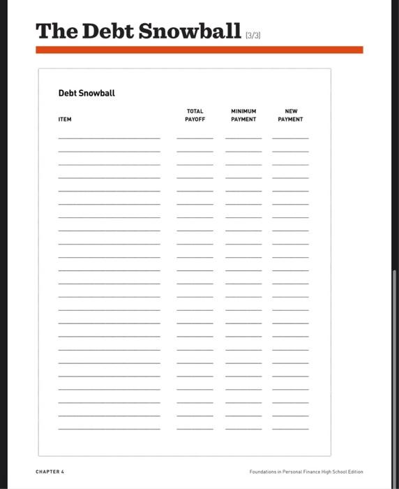 1 Of 4 The Debt Snowball 4 Activity Small Groups Of Chegg Com